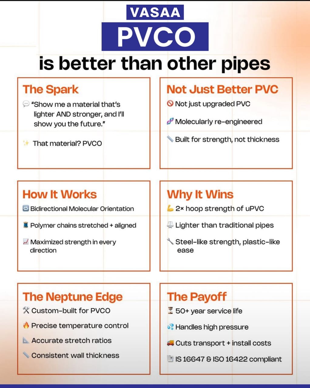 Established in 2016, Vasaa Industries has become a pioneer in advanced piping solutions with over 35 years of industry experience. Our relentless focus on quality, innovation, and sustainability has positioned us as a trusted name in manufacturing HDPE, MDPE, PVC-O, and uPVC piping systems.